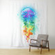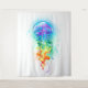Große, rieszierende, künstlerisch gezeichnet, helle Quallen mit langen Tentakeln auf Weiß, mit farbenfrohen Aquarellbildern überstrichen. Rainbow-Quallen