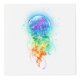 Große, rieszierende, künstlerisch gezeichnet, helle Quallen mit langen Tentakeln auf Weiß, mit farbenfrohen Aquarellbildern überstrichen. Rainbow-Quallen