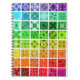 Brillante Notizbuchdecke mit Regenbogenfarben von Quilt-Mustern.