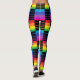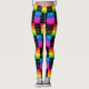 Wenn Sie Rechtecke und Regenbogen mögen, werden Sie diese bunten Leggings Liebe. Die geometrisch geformten Stretch-Hosen sind funky, mit Schachbrettern, Streifen und den Farben des Regenbogens. Die Farben sind schwarz, rot, orange, gelb, grün, blau, lila und rosa.