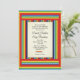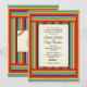 Eine bunte Band-Mix-Einladung für eine festliche Hochzeit. Setzen Sie die Vornamen des Paares auf eine Seite mit allen Hochzeitsinformationen und Begrüßung auf der Rückseite. Bitte dreimal Karo deinen ganzen Text.