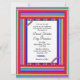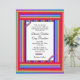 Eine bunte Band-Mix-Einladung für eine festliche Hochzeit. Setzen Sie die Vornamen des Paares auf eine Seite mit allen Hochzeitsinformationen und Begrüßung auf der Rückseite. Bitte dreimal Karo deinen ganzen Text.