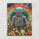 Rainbow Robot in einer Blume Postkarte