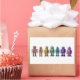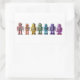 Es wird eine Reihe von sieben Robotern im Retro-Stil präsentiert, von denen jeder in einer unterschiedlichen Farbe von Rot bis lila gestrichen ist. Die Roboter verfügen über mechanische Details wie Wähltasten, Tasten und Antennen und geben ihnen ein Vintages, spielerisches Aussehen.