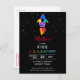 Rainbow Rocket Ship Weltraum Geburtstagsparty Black Postcard Einladung. Imitate verriegeln goldene Sterne und Regenbogenwasserraketen, die im Weltraum zu den klassischen Vorräten moderner Geburtstagsgeschenke gehören. www.SamAnnDesigns.com