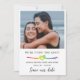 Nautische LGBT Hochzeit, die den Knoten Save the Date mit einem Herzseil voller Regenbogenwasserfarben verbindet. Fügen Sie zwei Fotos hinzu, eines auf beiden Seiten. Doppel-seitige nautische Bindung der Knoten LGBT Hochzeit speichern das Datum personalisiert mit Fotos.