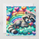 Rainbow Rose Raccoon Valentine Card Feiertagskarte