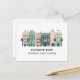 Die Rainbow Row Charleston South Carolina Postcard zeigt eine moderne Abbildung der historischen Rainbow Row in Charleston, South Carolina. Diese Abbildung verwendet traditionelle Farben aus Charleston wie Rosa, Blassgrau, Dunkelgrün, Hellgrün.
