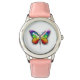 Kinderuhr aus Edelstahl mit rosa Lederarmband