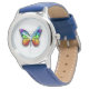 Kinderuhr aus Edelstahl mit blauem Lederarmband