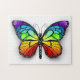 Realistischer Monarchschmetterling in allen Farben des Regenbogens auf weißem Hintergrund. Regenbogenschmetterling.