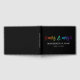 Schwarz lesbisches Hochzeitsgast-Buch mit Mrs. & Mrs. in hübscher, herzgeschmückter Schrift und Regenbogenfarben.