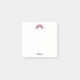 Diese personalisierten modernen und skurrilen Regenbogen-Post-it-Noten mit einem pulsierenden Regenbogen in Korallen, Rosa, aquamarin und Blau und einem Namen in einem Skript-Schriftart werden Freude zu Ihren Noten bringen. Teil einer Sammlung von Parcel Studios.