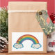Ein weißer Rechteckaufkleber mit Regenbogen, Möwen und Wolken. Eine sehr helle Kornstruktur aus Holz zeigt sich durch die Kunst. Ein glücklicher Aufkleber zum Abdichten von Umschlägen oder Geschenken!