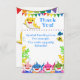 Feiern Sie Ihren kleinen Hai zum Geburtstag! Weiß mit blauen Schriftzügen und regenbogenfarbenen Haie. Alle Formulierungen können auf der Dankeschön-Karte angepasst werden. Blasen, Fische und Korallen sorgen für unterhaltsame Details. Ideal für alle Untersee-Partys oder Hai-Partys. Grafik von Mujka.