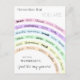 Eine vielfarbige Regenbogen-Postkarte, inspirierend und positiv. Perfekt als Abholung, oder als Möglichkeit, Ihre Wertschätzung für eine besondere Person zu zeigen. Der Typografie-Text lautet Denken Sie daran, dass Sie sind, gefolgt von einer Reihe positiver Worte (mutig, geliebt, würdig, loyal, genug etc), und einfach wunderbar, genau wie Sie sind.
