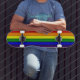 Ein buntes Regenbogen-Skateboard. Zeigen Sie Ihren Gay Pride beim Reiten im Stil.