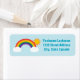 Mit dem Regenbogen-Adressetikett mit der Sonne über dem Regenbogen und Wolken und hellblauem Hintergrund. Koordiniert mit unseren Einladungen zum Regenbogengeburtstag. Personalisieren Sie die Designvorlage mit Ihrer Rücksendeadresse.