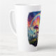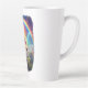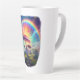 Eine wunderschöne Latte-Tasse mit rosa Pilz und Regenbogenhintergrund