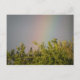 Auf dieser Postkarte befindet sich ein wunderschönes Foto eines Regenbogens über dem Baumgipfel. Das Foto wurde unmittelbar nach einem Regenbogen aufgenommen, um die lebhaften Farben des Regenbogens zu erfassen. Der umliegende Himmel ist grau mit Wolkendecke.