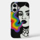 Capture attention with this bold and vibrant phone case featuring a dramatic black-and-white pop art portrait of a woman exhaling a brilliant, swirling plume of rainbow-colored smoke.
