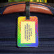 Der Text auf der Rückseite dieses farbigen Gepäckanhängers lässt sich leicht anpassen, mit einem abstrakten Wendelregenbogen, der um ein zentrales Ziel in den Farben Grün, Blau, Gelb, Orange und Rot wirbelt. Stellen Sie sicher, dass Ihre Koffer auf einem Flughafenkarussell mit einzigartigen Gepäckmarken-Designs auffallen!