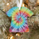 Foto aus Stoff gefärbt eine helle, farbige Regenbogenspirale gefärbte Krawatte Muster auf einem T-förmigen Acrylschmuck. Fügen Sie ein Monogramm oder einen personalisierten Text hinzu. Erstellen Sie Ihre eigene Weihnachtsschmuck für Ihre Groovy Oma. Fügen Sie ein quadratisches Foto und eine personalisierte Textnachricht hinzu.