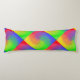 Hier ist ein buntes Kissen mit einem abstrakten, spiralförmigen Regenbogenmuster, das um ein zentrales Ziel in den Farben Grün, Blau, Gelb, Orange und Rot wirbelt.
