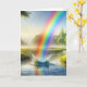 Ein lebendiger Regenbogen schlängelt sich in einen ruhigen Fluss, der von üppiger Vegetation und weit entfernten Bäumen umgeben ist. Der Text kann geändert werden.