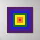 Zeigen Sie Ihre Liebe mit einem geometrischen Regenbogen. Eine Reihe roter, orangefarbener, gelber, grüner, blauer, indigofarbener und violetter Quadrate strahlen aus dem Mittelpunkt dieses festlichen Designs aus. Digitales 5400 x 5400 Pixel Bild. Copyright ©2011 Claire E. Skinner, Alle Rechte vorbehalten.