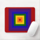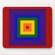 Zeigen Sie Ihre Liebe mit einem geometrischen Regenbogen. Eine Reihe roter, orangefarbener, gelber, grüner, blauer, indigofarbener und violetter Quadrate strahlen aus dem Mittelpunkt dieses festlichen Designs aus. Digitales 5400 x 5400 Pixel Bild. Copyright ©2011 Claire E. Skinner, Alle Rechte vorbehalten.