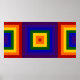 Zeigen Sie Ihre Liebe der Farbe mit abwechselnden geometrischen Regenbögen. Eine Reihe roter, orangefarbener, gelber, grüner, blauer, indigofarbener und violetter Quadrate strahlen aus dem Mittelpunkt dieses festlichen Designs aus. Auf beiden Seiten des Hauptplatzes befinden sich die Hälfte von 2 Regenbogenquadraten mit den Farben in umgekehrter Reihenfolge. Digitales Bild 10400 x 5200 Pixel. Copyright ©2011 Claire E. Skinner, Alle Rechte vorbehalten.