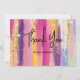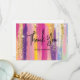 Vielen Dank für Ihre Karte mit einem abstrakten Hintergrund Design. Lebhafte Streifen in fett- und pastellfarbenen Farben. Pinks, Blues, Püree und Gelbtöne kombiniert mit Imitaten funkelnd Glitzer oben