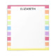 Dieses Notizblock weist horizontale Regenbogenstreifen mit einem personalisierten Namen auf.