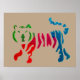 Ein farbenprächtiges Regenbogen Stripey Tigerdesign mit roter, lila, grüner und blauer Originalschablone von Zoe Tuong. Der Hintergrund ist ganz auf den Anzug der Dekoration abgestimmt, ideal für ein Kinderzimmer oder um das Haus mit einem bunten Kunstambiente zu erhellen.