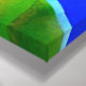 Digitales Aquarellbild in lebhaften Regenbogenfarben und -texturen mit Sonnenaufgang und hervorstehenden Sonnenstrahlen.