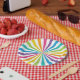 Fun centered sunburst of rainbow colors to brighten any party or event, or just for your home decorating!