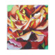 von der originalen Aquarellmalerei-Blume der Künstlerin Sacha Grossel aus der bunten "Alpine Sunset"-Rose in makro nahe Fokus. Die Orange-, Gelb- und Brauntöne dieser schönen Rose und die bunten, hellen Effekte des Blumendesigns vor einem coolen, grünen Hintergrund geben diesem botanischen Wunder den Eindruck eines feurigen Sonnenuntergangs.