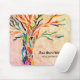 Yoga Instructor Mouse Pad. Dieses einzigartige Mauspad ist mit einem Druck eines niederbogenfarbenen Mosaikbaums auf einem hellen Korallenboden und beige Hintergrund dekoriert. Einfach anpassbar. Weil wir unsere eigenen Kunstwerke erstellen, werden Sie dieses exakte Bild von anderen Designern nicht finden. Original Mosaik © Michele Davies.