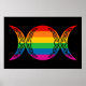 Ein dreifaches Göttesymbol in Regenbogenfarben.