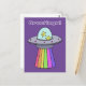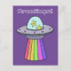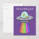 Die Postkarte mit einer fliegenden Untertasse und Regenbogen macht Spaß. Textgrüße, Schriftart und Hintergrundfarbe können nach Ihren Wünschen geändert werden.