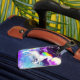 Ein Gepäckanhänger mit einem Regenbogen.