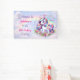 A sweet unicorn themed birthday party personalized banner for a little girl. Purple, pink and rainbow design sparkles and hearts. Welcome guests to your party with this cute banner!