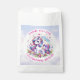 A sweet unicorn themed birthday party personalized thank you favor bag for a little girl. Purple, pink and rainbow design sparkles and hearts. Stuff these with goodies to thank guests for their support!