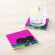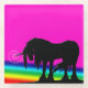 Ein heller, kühner und wunderschöner Untersetzer mit einornigen Motiven mit einem schwarzen mystischen Einhorn und einem Regenbogenhintergrund. Der perfekte Untersetzer für Ihre Party Drinks.