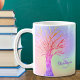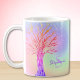 Diese hübsche Tasse ist mit einem bunten Baum und einem Hintergrund in Regenbogen verziert, mit glänzenden Sternen. Einfach anpassbar. Original Mosaikbaum © Michele Davies.