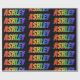 Dieses aufregende, lebendige, farbenfrohe Verpackungspapier-Design zeichnet sich durch den gemeinsamen Vornamen "ASHLEY" aus, der ein farbenprächtiges Regenbogenspektrum inspiriert Farbmuster aufweist. Der Hintergrund ist schwarz. Aufregende Verpackungspapiere wie dieses könnten Spaß machen, wenn man jemandem namens Ashley ein Geschenk macht. [~Z0000354]