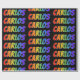 Dieses farbenfrohe, lebendige, spannende Packpapier-Design zeichnet sich durch den gemeinsamen Vornamen "CARLOS" aus, der ein farbenprächtiges Regenbogenspektrum wie Farbmuster aufweist. Der Hintergrund ist schwarz. Farbenfrohe Verpackungspapiere wie dieses könnten Spaß machen, wenn man jemandem namens Carlos ein Geschenk oder Geschenk gibt. [~Z0000354]