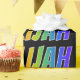 Dieses bunte, lustige, lebendige Verpackungspapier-Design zeichnet sich durch den gemeinsamen Vornamen "ELIJAH" aus, der ein farbenprächtiges Regenbogenspektrum wie Farbmuster aufweist. Es hat auch einen schwarzen Hintergrund. Ein lebendiges Verpackungspapier wie dieses könnte eine lustige Art sein, ein Geschenk zu verpacken, das jemand namens Elijah gegeben hat. [~Z0000354]