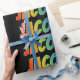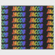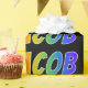 Dieses lustige, farbenfrohe, lebendige Verpackungspapier-Design zeichnet sich durch den gemeinsamen Vornamen "JACOB" aus, der ein farbenprächtiges Regenbogenspektrum wie Farbmuster aufweist. Der Hintergrund ist schwarz. Farbenfrohe Verpackungspapiere wie dieses könnten eine lustige Art sein, ein Geschenk oder Geschenk zu verpacken, das jemandem gegeben wird, der Jakob heißt. [~Z0000354]